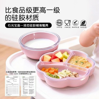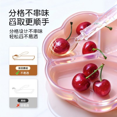 七瓣花婴儿医用级硅胶餐具餐盘带加固吸盘分格儿童辅食碗