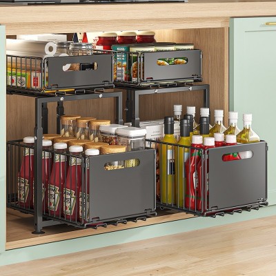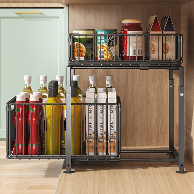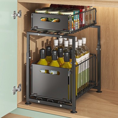 首页 > 家居 / 家装 / 厨具 > 厨具 > 厨房配件 > 橱柜内抽拉式拉篮厨房下水槽双层收纳盒置物架滑轨抽屉分层调料架
