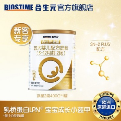 首页 > 母婴 / 玩具 / 乐器 > 奶粉 > 2段 > 【新妈专享】合生元派星较大婴儿2段配方奶粉400g 乳桥蛋白LPN
