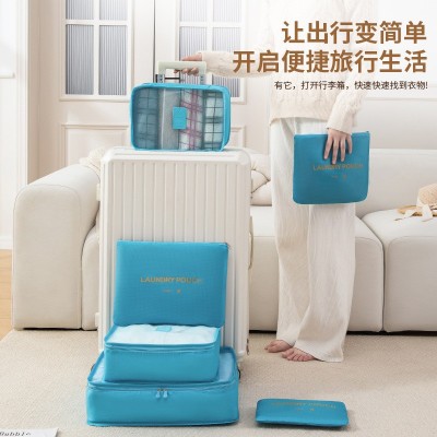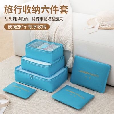 旅行收纳袋六件套行李箱衣物内衣分装整理袋旅游四分格衣服收纳包