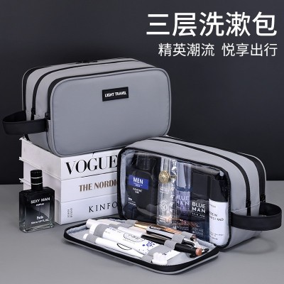 精英系列三层大容量男士洗漱包旅行便携高级感化妆品收纳包 便携多功能