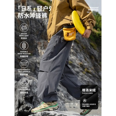 IZEXX潮牌户外登山三防泼水速干运动加绒冲锋裤男女机能风工装裤