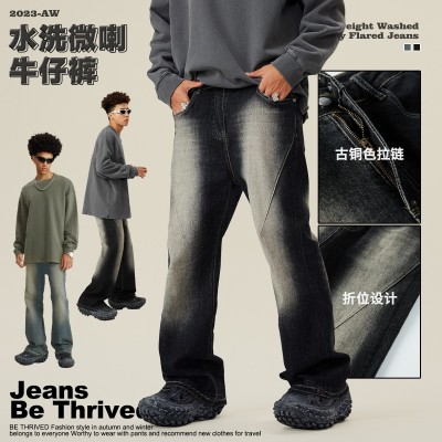 2025春季美式宽松潮牌水洗破坏vibe风微喇牛仔裤长裤男潮