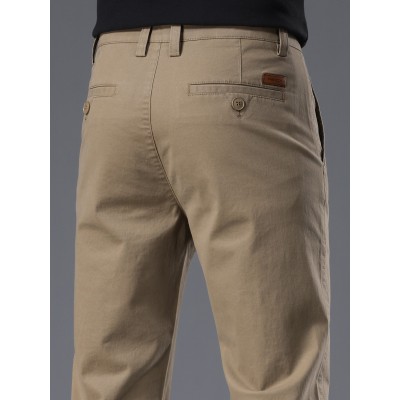 高端棉卡其色休闲裤男士2026新款春秋季宽松直筒弹力商务长裤子
