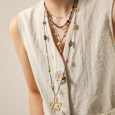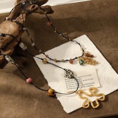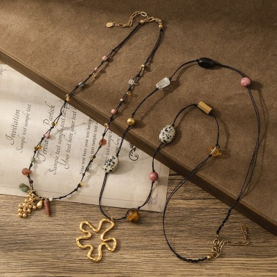首页 > 男装 / 女装 / 内衣 > 服饰配件 > 配饰 > 复古手工编织绳串珠钛钢项链女小众设计民族风毛衣链花朵配饰