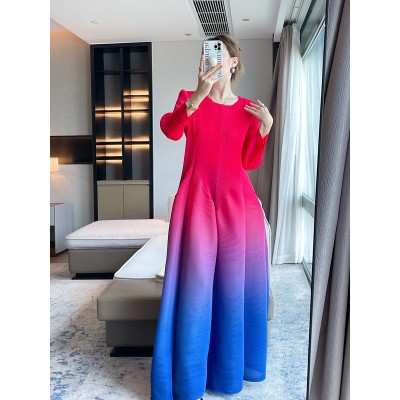 首页 > 男装 / 女装 / 内衣 > 女装 > 连衣裙 > 三宅2025秋季新款渐变色印花褶皱连衣裙通勤高级感收腰气质大摆裙