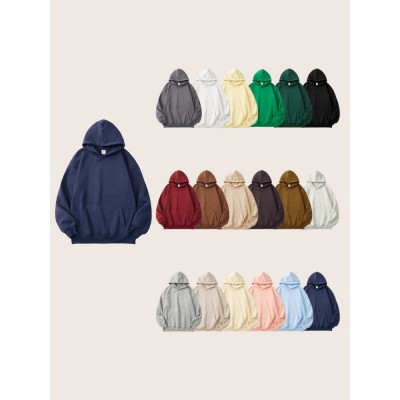 重磅复合双面套头连帽卫衣宽松秋季男女纯色上衣 秋冬男式卫衣