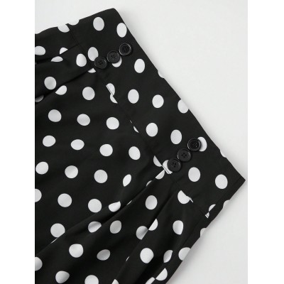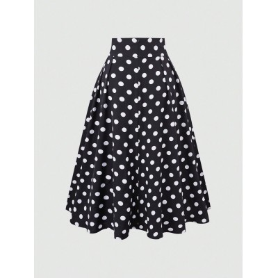 女装亚马逊女士新款时尚优雅高腰波点大摆半身裙