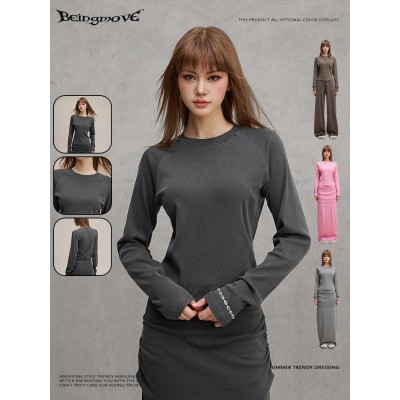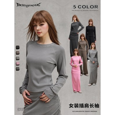 街头制燥|秋季欧美外贸高级感辣妹上衣性感插肩显瘦长袖T恤女