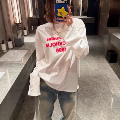 首页 > 男装 / 女装 / 内衣 > 女装 > T恤 > 正确版型2026春夏新款ac植绒字母印花套头长袖T恤简约男女款内搭