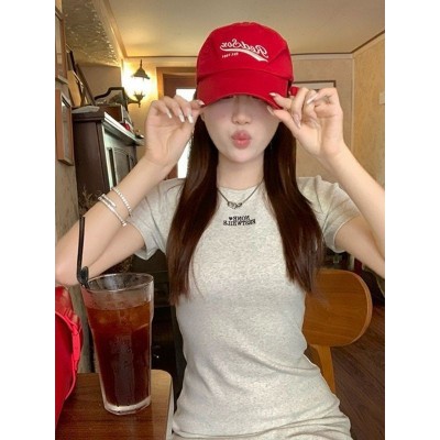休闲运动a字型短裙甜美气质T恤连衣裙女收腰修身短袖刺绣包臀裙春