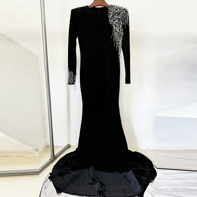 首页 > 男装 / 女装 / 内衣 > 女装 > 连衣裙 > 品质现货晚礼服 2025明星系列重工钉珠醋酸丝绒小拖尾长裙连衣裙