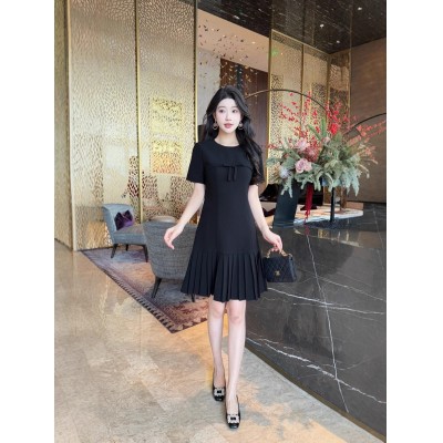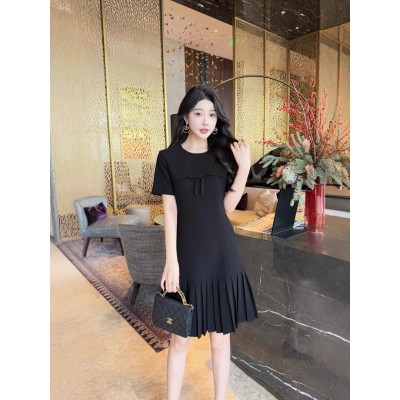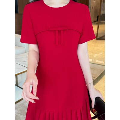 首页 > 男装 / 女装 / 内衣 > 女装 > 连衣裙 > 欧美范限定2025夏装显瘦纯色色连衣裙短袖圆领设计感蝴蝶结百褶裙